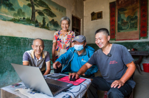 熊桂林指導(dǎo)鄉(xiāng)親們?cè)诰W(wǎng)上銷售農(nóng)產(chǎn)品