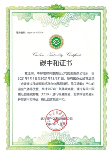在以“眾生的地球”為主題的第54個(gè)世界地球日到來(lái)之際,北京綠色交易所為首批開(kāi)業(yè)的銀行理財(cái)子公司“中郵理財(cái)”出具組織運(yùn)營(yíng)層面“碳中和”證書(shū)。由此,中郵理財(cái)成為國(guó)內(nèi)領(lǐng)先的獲得權(quán)威機(jī)構(gòu)認(rèn)證的“碳中和理財(cái)公司”,為世界地球日增添一抹新的綠色。