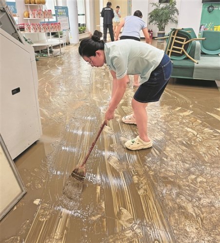 8月4日,涿州郵政范陽(yáng)路營(yíng)業(yè)所全體員工到崗,合力清理網(wǎng)點(diǎn)淤泥,當(dāng)天上午網(wǎng)點(diǎn)恢復(fù)營(yíng)業(yè)。□張宇梅 攝