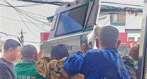 吉林省扶余市郵政分公司蔡家溝支局員工緊急轉(zhuǎn)移自助機具到安全地方。□吉林省郵政分公司提供
