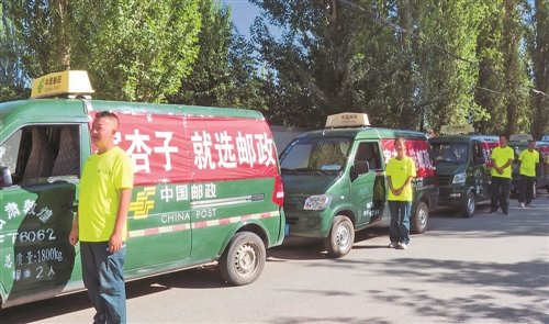 酒泉李廣杏收寄大會(huì)戰(zhàn),郵車整裝待發(fā)。