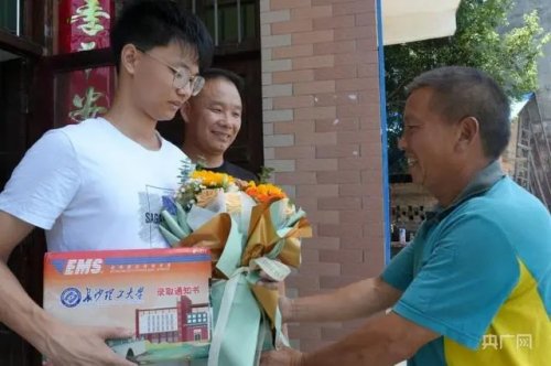 吳江南送上錄取通知書和鮮花(央廣網(wǎng)記者 李芳森 攝)