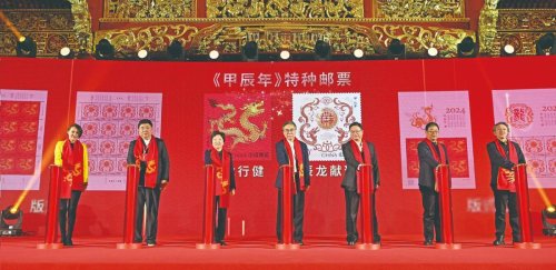 天龍行健,辰龍獻(xiàn)瑞。1月5日,《甲辰年》特種郵票首發(fā)儀式在中國(guó)工藝美術(shù)館(中國(guó)非物質(zhì)文化遺產(chǎn)館)隆重舉行。