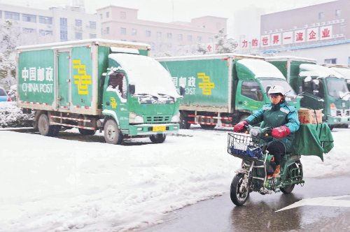 湖北省武漢市郵政分公司在做好人員、車輛安全防范的情況下,攬投部全部正常對外服務(wù);投遞員迎雪而上,提前到崗,做好車輛檢查、郵件分揀等班前準備工作。同時,合理規(guī)劃投遞路線,抓緊時間出班,及時將郵件安全、高效送到市民手中。