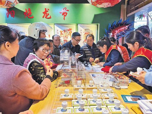 “炮仗響,舞龍起”。在廣西壯族自治區(qū)賓陽縣,融合了漢、壯民族文化特色的綜合性民間節(jié)慶系列活動(dòng)——賓陽炮龍節(jié),至今已延續(xù)多年。2月14日,為發(fā)揚(yáng)傳播炮龍文化,炮龍主題郵局在賓陽縣開業(yè)。主題郵局圍繞國家級(jí)非物質(zhì)文化遺產(chǎn)——“賓陽炮龍”這一主題,結(jié)合中式風(fēng)格,配上龍頭、龍紋、爆竹、郵政綠等元素打造,為群眾提供一個(gè)炮龍情懷文化交流與紀(jì)念的平臺(tái),也為廣大游客朋友提供加蓋章戳、打卡等多元化的郵政特色服務(wù)。□謝向炫 攝影報(bào)道