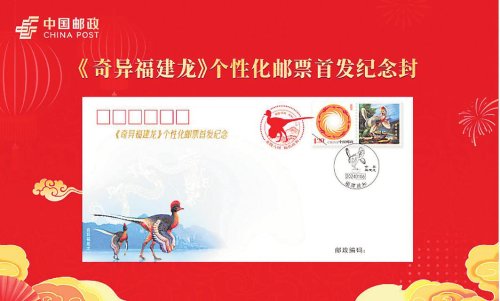 活動當(dāng)天,《政通人和 奇異龍騰》郵票珍藏冊和《奇異福建龍》異形明信片、紀念封同步發(fā)行?!镀娈惛=垺樊愋蚊餍牌惶?枚,體現(xiàn)了“記載億年龍鳥起源地、突出政和特色、彰顯時代特點”的設(shè)計理念,極具收藏價值。