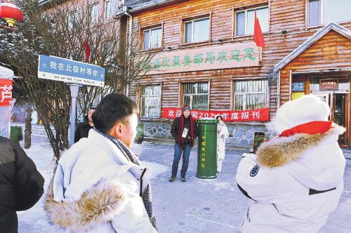 在北極村郵局,游客們踴躍打卡留下美好的旅行紀(jì)念。□本報(bào)記者 張丹丹 攝