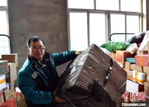 “一共389件,快過(guò)年了,包裹比平時(shí)多一倍,大部分都是村民購(gòu)買(mǎi)的年貨。”楊小合的電動(dòng)三輪車(chē)內(nèi)塞滿(mǎn)了包裹,就連頂棚圍欄上也放了幾個(gè)編織袋,堆起來(lái)的高度比他還要高出許多。
