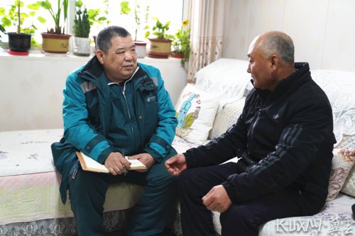 郭紅崗(左一)利用送快遞的間隙到村民家走訪調(diào)研,完善兩會(huì)建議。長(zhǎng)城網(wǎng)·冀云客戶端記者 劉俐驗(yàn) 攝
