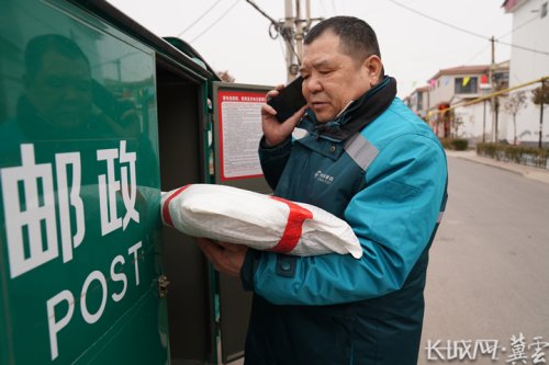 全國(guó)人大代表、中國(guó)郵政集團(tuán)有限公司邢臺(tái)市分公司基層投遞員郭紅崗電話通知村民取快遞。長(zhǎng)城網(wǎng)·冀云客戶端記者 劉俐驗(yàn) 攝
