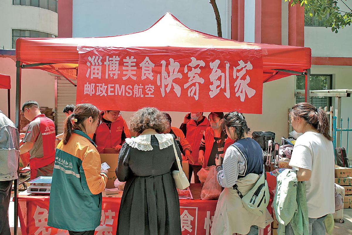 淄博郵政設立服務點,為游客提供便捷的寄遞服務。
