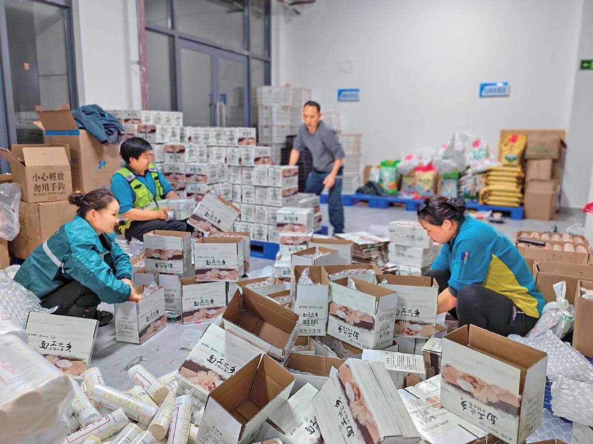 3月28日晚,云陽縣郵政分公司結束直播后,郵政員工加班加點打包云陽小面。
