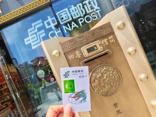夜色里的大唐不夜城街區(qū),2021年建在這里的大唐郵驛主題郵局,因為銅質(zhì)打造四面投信的“銅匭·四獸”郵筒,顯得格外扎眼。這里作為全國首家以唐文化為主題的郵局,一款款獨具巧思的郵政產(chǎn)品——大唐特色明信片、手辦、各式章戳,2024年全國首枚生肖龍?zhí)咨幕沾恋?,幫市民游客直觀了解郵驛文化,吸引大量游客前來打卡,是目前西安日接待游客量最大的主題郵局。