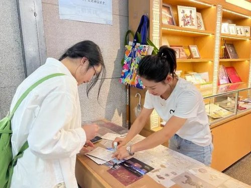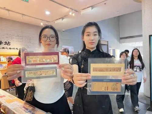 在陜歷博絲路驛站主題郵局,兩名從武漢來的“00后”大學(xué)生徐睿和李芷涵,也發(fā)現(xiàn)了驚喜。徐睿說:“我們是學(xué)藝術(shù)設(shè)計的,剛剛在樓上參觀時,看到了難得一見的半壁仕女圖,沒想到在樓下就發(fā)現(xiàn)了仕女圖的特種郵票。特別開心!”