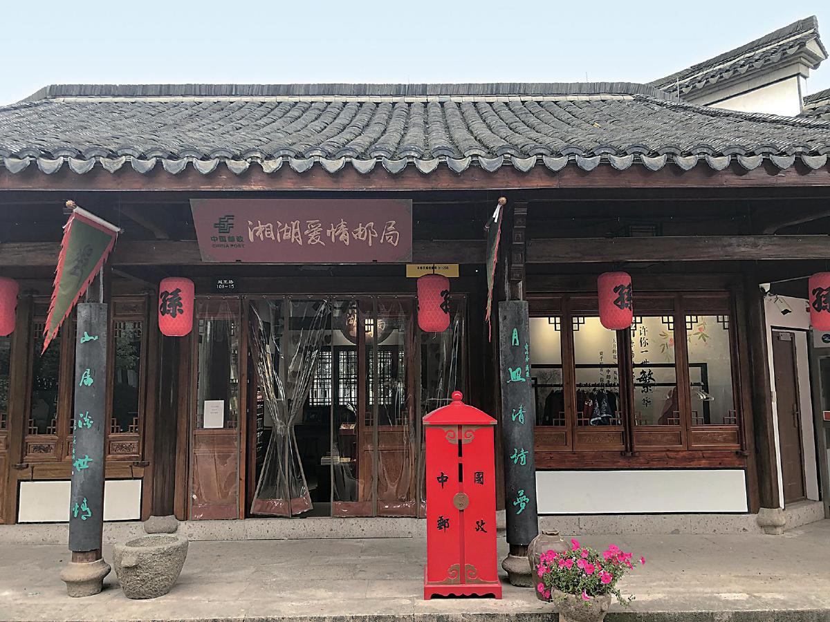 位于浙江省杭州市的蕭山湘湖因風(fēng)景秀麗而被譽(yù)為西湖的“姐妹湖”。在湘湖,有種古韻,叫做下孫文化村。走進(jìn)這個(gè)地域風(fēng)情濃郁的歷史文化村落,沿著主街漫步,一個(gè)別具一格的紅色的“花轎郵筒”映入眼簾——這里就是湘湖愛(ài)情郵局。從外觀(guān)上看,這是一間裝飾成紅色喜慶風(fēng)格的店鋪。走進(jìn)郵局,里面陳列著各式愛(ài)情元素的飾品和明信片,臨窗的一角擺放了中式的傳統(tǒng)服裝,讓郵局更具傳統(tǒng)文化韻味。