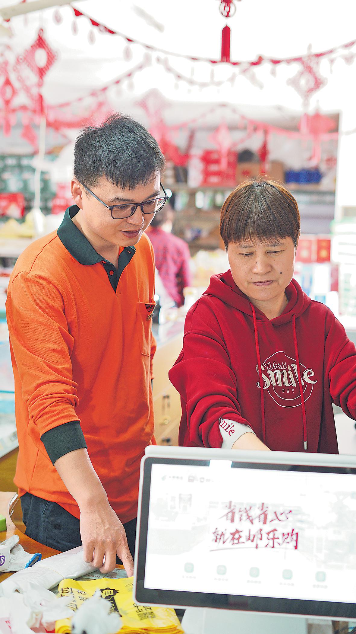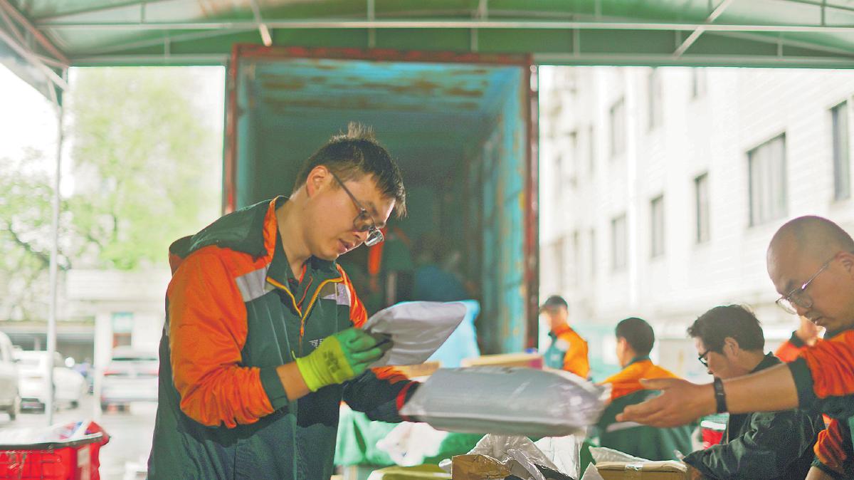攬收郵件時,阮海良常與“郵掌柜”交流業(yè)務(wù)。