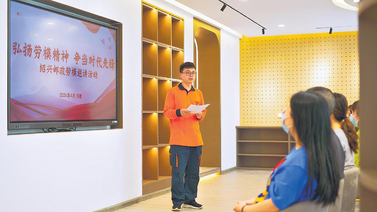 “三百六十行,行行出狀元。我們快遞小哥也可以走技能成才、技能報國之路。我們要立足崗位、立足本職、立足實踐,爭做有擔(dān)當(dāng)、能吃苦、肯奮斗的新時代好青年……”4月18日,在紹興越富郵生活館,阮海良作為青年榜樣,向現(xiàn)場的郵政系統(tǒng)青年代表分享了他的成長故事,鼓勵大家奮發(fā)向上。
