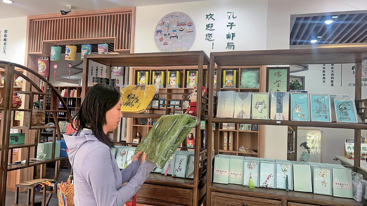 游客在孔子郵局內(nèi)選購文創(chuàng)產(chǎn)品。