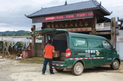 在廣西憑祥桂商現(xiàn)代農(nóng)業(yè)生態(tài)園里,郵政工作人員正將一箱箱打包好的葡萄搬上郵車,準(zhǔn)備發(fā)往各地。
