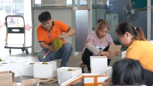 眼前,郵政工作人員正忙著將一個個新鮮的榴蓮打包。據(jù)這里的負(fù)責(zé)人潘新杰介紹,憑祥郵政倉是2017年設(shè)立的,成為當(dāng)?shù)剜]政服務(wù)東南亞水果寄遞體系中的關(guān)鍵一環(huán)。通過“引商入倉”“電商造包”等增值服務(wù)舉措的相繼實施,該倉已從最初單一的收寄服務(wù),逐步拓展至集倉儲、銷售、打包、寄遞為一體的全環(huán)節(jié)服務(wù),不僅提升了郵政服務(wù)的綜合效能,更在扶持當(dāng)?shù)仉娚炭蛻舴矫姘l(fā)揮了積極作用。