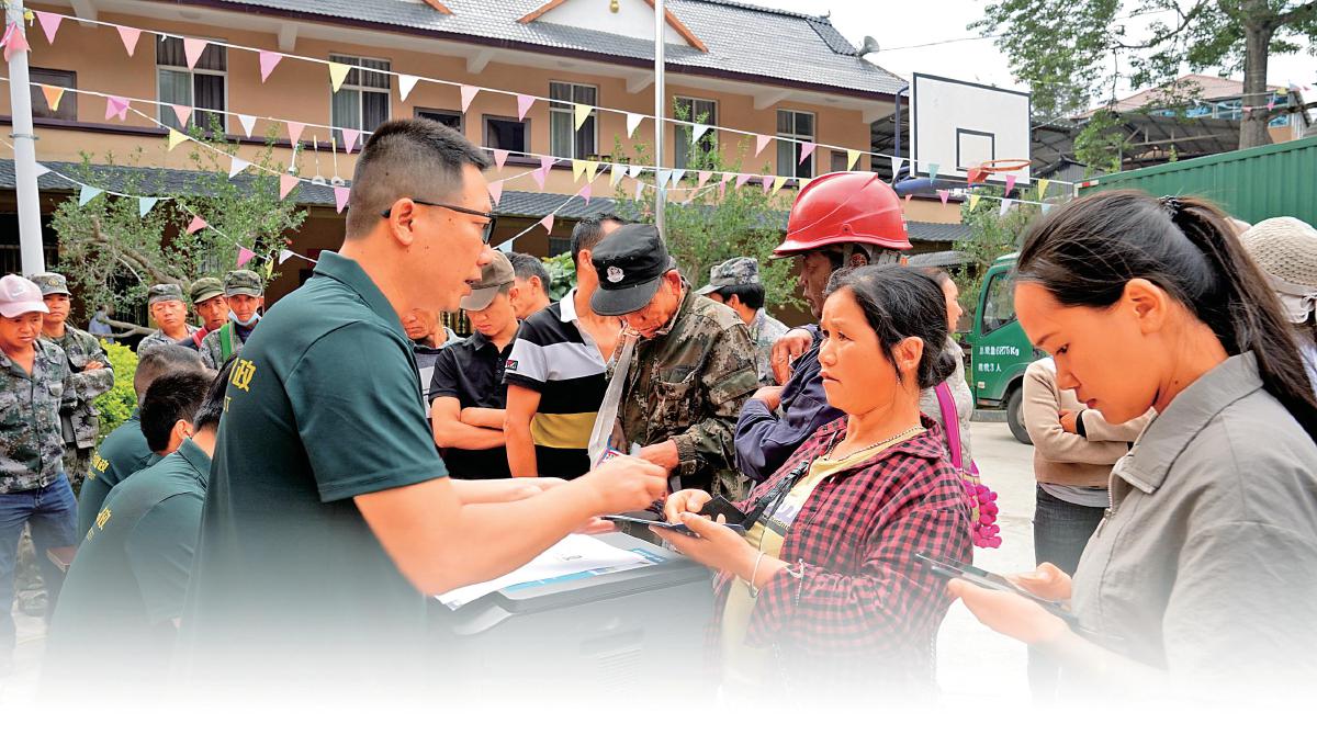 5月16日,在云南省普洱市瀾滄縣阿里村郵政臨時(shí)服務(wù)點(diǎn),郵政員工為村民現(xiàn)場(chǎng)辦理摩托車(chē)滅失注銷(xiāo)登記、保險(xiǎn)繳納等業(yè)務(wù),受到群眾的熱烈歡迎。□中國(guó)郵政報(bào)記者 張晉通 攝