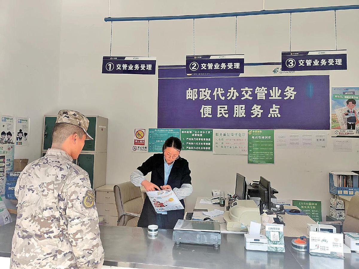 麗江郵政交管業(yè)務(wù)便民服務(wù)點(diǎn)的工作人員為客戶辦理交管業(yè)務(wù)。