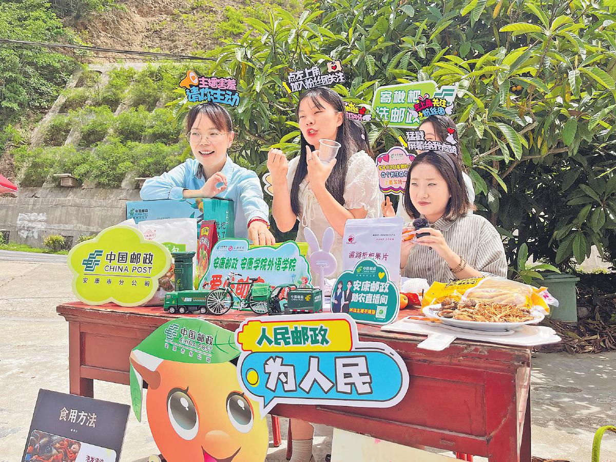 近日,陜西省安康市郵政分公司與安康學院外語學院、國際教育學校師生共80余人,在瀛湖洞橋村安康郵政枇杷楊梅基地開展了一場別開生面的助農直播活動。