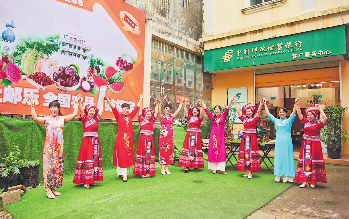 “朋友請(qǐng)到憑祥來,火紅的木棉為你開。這里有雄偉的友誼關(guān),這里有富饒的邊寨,這里是祖國開放的大門……”6月5日中午,采訪組沿著友誼鎮(zhèn)的邊境郵路一路前行,還沒到鎮(zhèn)上的弄懷營業(yè)所,就聽到了陣陣歡歌笑語。