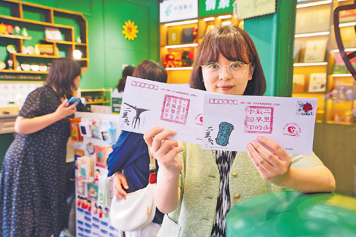 “爸爸,快看!這個(gè)印章像不像電視里的玉璽?”來(lái)自鄭州的小朋友徐鳴鶴興高采烈地向家長(zhǎng)炫耀自己的發(fā)現(xiàn)。他口中的“玉璽”是二里頭文化主題郵局結(jié)合夏王朝元素推出的紀(jì)念印章,其中一枚印章專門以小篆字體刻制,趣味十足又震撼人心。據(jù)主題郵局負(fù)責(zé)人代向梅介紹,主題郵局還有紀(jì)念印章、文物系列印章、洛陽(yáng)特色景點(diǎn)印章、套色印章等。一到假期,就有大量游客排隊(duì)蓋章。河南科技大學(xué)學(xué)生小夏邊蓋章,邊向同伴“抱怨”說(shuō):“自從二里頭主題郵局的集戳筆記在網(wǎng)上火了后,總有外地的朋友托我為他們集戳。沒(méi)辦法,我只能一次次享受蓋戳的樂(lè)趣了!”