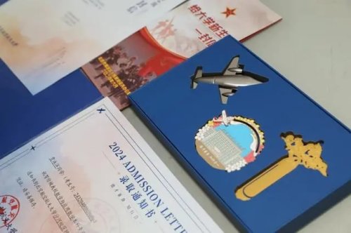 啟封北航2024年本科生錄取通知書,首先映入眼簾的是封套的北航藍(lán),封面上燙金的背影則代表著所有北航新生即將開啟人生的金色新篇,實(shí)現(xiàn)手可摘星辰的夢想。翻開內(nèi)封,校訓(xùn)“德才兼?zhèn)?,知行合一”是送給新北航人的第一句囑托。