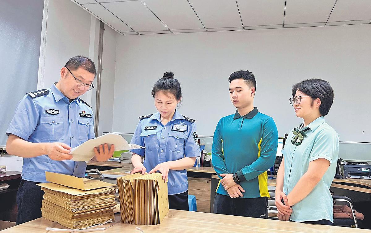 合肥市分公司同城營(yíng)業(yè)部攬收人員、車管所檔案科駐點(diǎn)人員同車管所民警交接檔案文件。