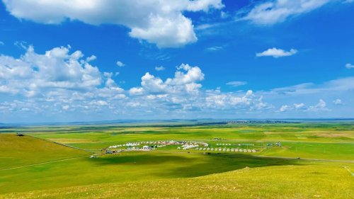 盛夏的呼倫貝爾大草原,清澈的藍(lán)天上懸掛著朵朵白云,目之所及是廣闊無垠的綠,牛羊成群,美得就像一幅畫。