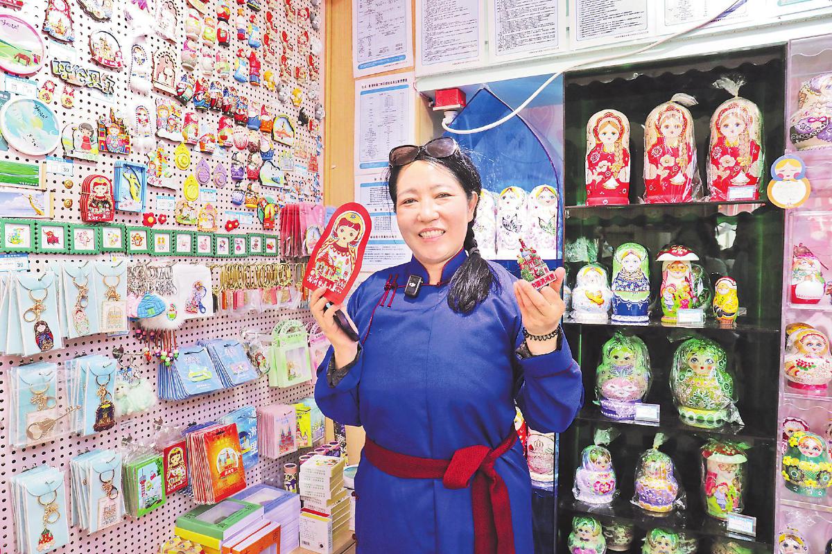 “國門邊居然還有郵局,太神奇了!快幫我拍張照!”在國門景區(qū)的入口處,占地200多平方米的滿洲里國門主題郵局吸引了不少游客。跟隨游客的腳步進(jìn)入主題郵局,分布有序的各個功能區(qū)都擠滿了人?!斑@是我們的爆款——國門冰箱貼,琺瑯工藝,火車還可以自由活動……”記者看到,沒等郵局工作人員介紹完,幾位游客已經(jīng)快速買下好幾樣文創(chuàng)產(chǎn)品。國門主題郵局負(fù)責(zé)人項欣介紹說:“我們主題郵局里有郵品、文創(chuàng)產(chǎn)品、特色食品等500多種,以國門為主題的文創(chuàng)產(chǎn)品和鄂溫克族手工藝品都非常受游客喜愛?!?/p>