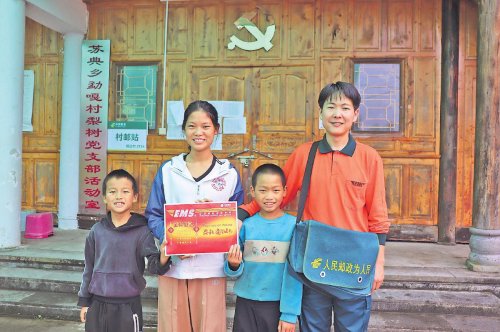 余仙花帶著她暑假免費幫助補習(xí)功課的小學(xué)生,感謝郵遞員送來錄取通知書。