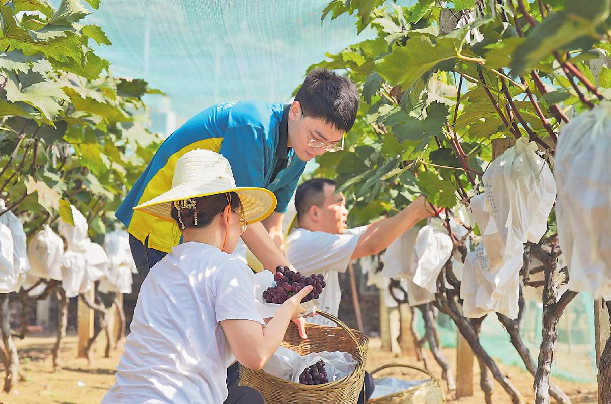 日前,湖北省荊門市郵政分公司助農(nóng)服務(wù)隊(duì)來(lái)到漳河鎮(zhèn)京河葡萄種植基地,幫助一位身體有殘疾的種植者采摘、裝箱、打包、運(yùn)輸葡萄,并通過(guò)“基地直播+社區(qū)團(tuán)購(gòu)”的方式,助銷葡萄1300多斤。據(jù)悉,幫扶對(duì)象劉師傅是一位50多歲的殘疾人,因身體活動(dòng)受限,自家種植的葡萄出現(xiàn)滯銷。荊門市分公司通過(guò)走訪了解到這一情況后及時(shí)伸出援助之手,解了劉師傅的燃眉之急,受到當(dāng)?shù)厝罕姷暮迷u(píng)。