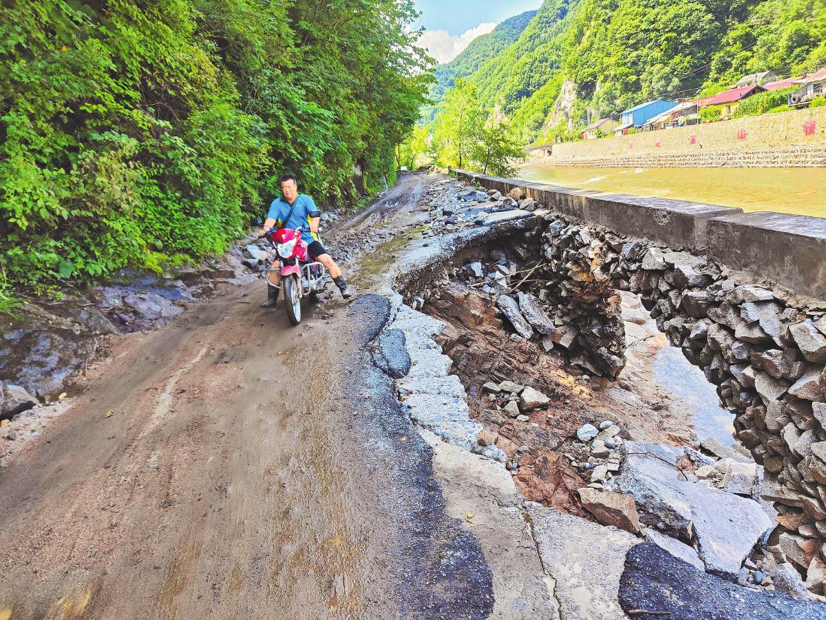 汛情期間,吉林省長白朝鮮族自治縣八道溝郵政支局投遞員趙永勝改騎摩托車通過危險路段,確保郵件及時送達。