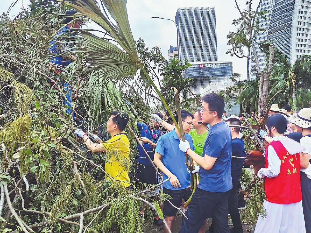 海南省分公司直屬機關(guān)黨委組織40名機關(guān)黨員參與道路障礙物清理。