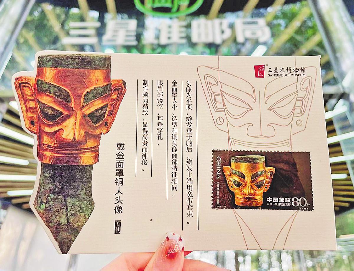 三星堆遺址是20世紀(jì)人類最偉大的考古發(fā)現(xiàn)之一,被譽(yù)為“長江文明之源”,被國家文物局列為“十四五”時期大遺址。2023年7月27日,三星堆博物館新館開館,1500多件(套)新老文物集中亮相,吸引了世界各地的游客來此打卡。在這里,還有一處寶藏打卡點(diǎn)等待著大家,那便是集三星堆文明與郵政文化于一體的三星堆主題郵局。