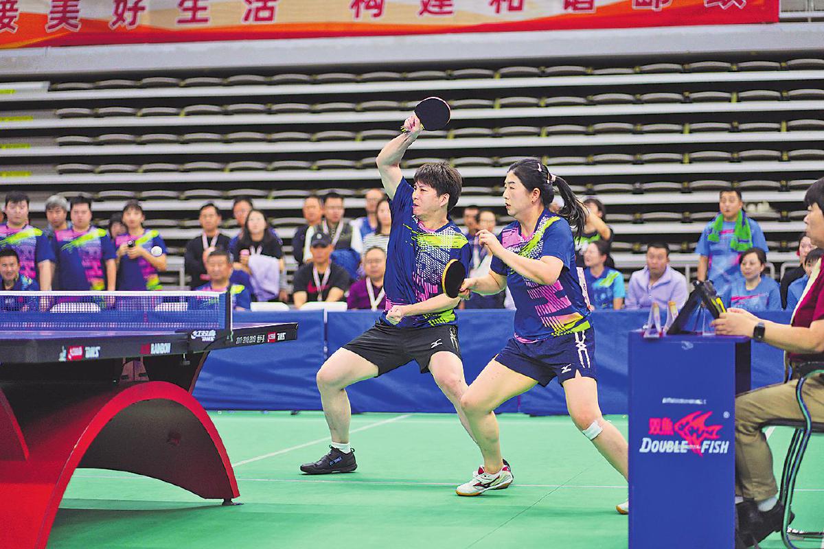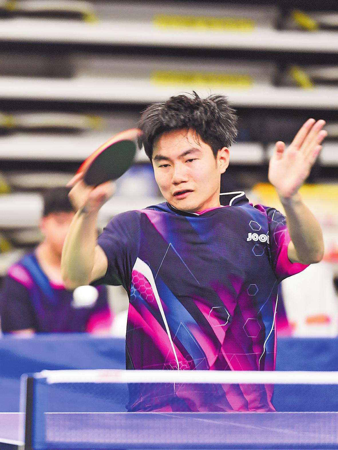 本次比賽觀賞性、競技性十足。賽場上,有面對臺風(fēng)肆虐依然堅(jiān)持訓(xùn)練迎戰(zhàn)比賽的隊(duì)伍,有連續(xù)奮戰(zhàn)四屆比賽即將退休的老將,有從國家隊(duì)、省隊(duì)退役帶傷上陣的斗士,有并肩作戰(zhàn)的夫妻檔,有接力傳承的老中青組合,匯聚起這場乒乓盛宴的強(qiáng)大陣容。來自江西郵政代表隊(duì)的劉羿和吳春顏是夫妻檔混雙組合,兩人在大學(xué)因乒乓球結(jié)緣,后來又成為工作上的同事,這次在賽場上更是展現(xiàn)出了伴侶間的默契。“我們非常了解彼此,很多時(shí)候心領(lǐng)神會(huì),能夠取長補(bǔ)短?!眲Ⅳ嗳缡钦f。曾代表中國郵政出征“2020中國職工乒乓球聯(lián)賽”并斬獲“四金二銀一銅”戰(zhàn)績的選手們幾乎全部來到了賽場,其中男單青年甲組冠軍蔡偉表示:“上次是對外比拼,這次是內(nèi)部競技,友誼第一?!?/p>