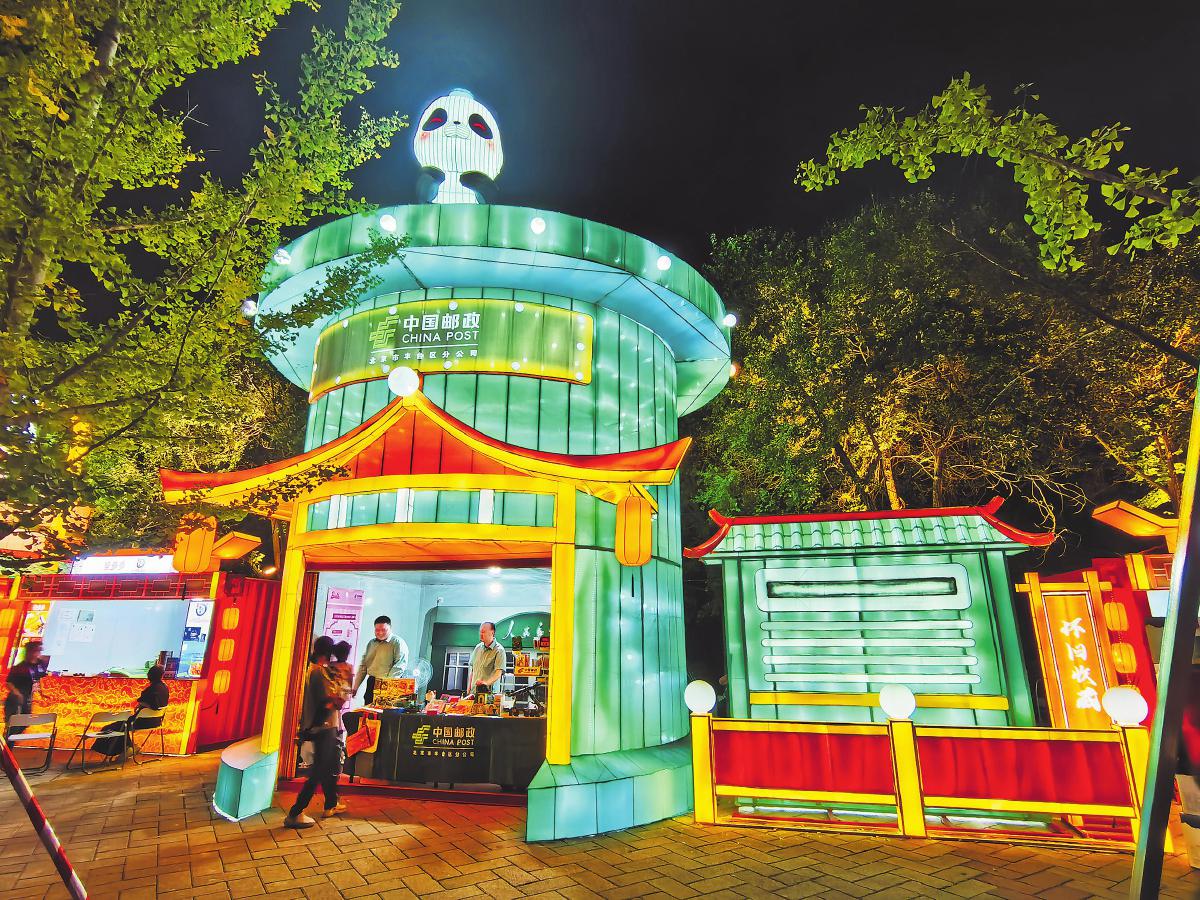 9月14日,北京首屆“京彩燈會”——園博園中秋國慶彩燈游園會盛大開幕。此次燈會規(guī)模宏大,是四川自貢燈會在北京的再度精彩呈現,為廣大游客帶來了一場融合傳統(tǒng)文化與現代創(chuàng)意的視覺盛宴。燈會上,一組藍綠色調的郵筒花燈格外引人注目。這組花燈具有濃厚的中式建筑風格,展現了郵筒的傳統(tǒng)形象,特別是上方的熊貓設計,憨態(tài)可掬。為更好地服務“京彩燈會”,北京市豐臺區(qū)郵政分公司專門設計了園博園燈會紀念章,還推出了一系列融合郵政傳統(tǒng)文化與現代元素的文創(chuàng)產品,深受游客的青睞。