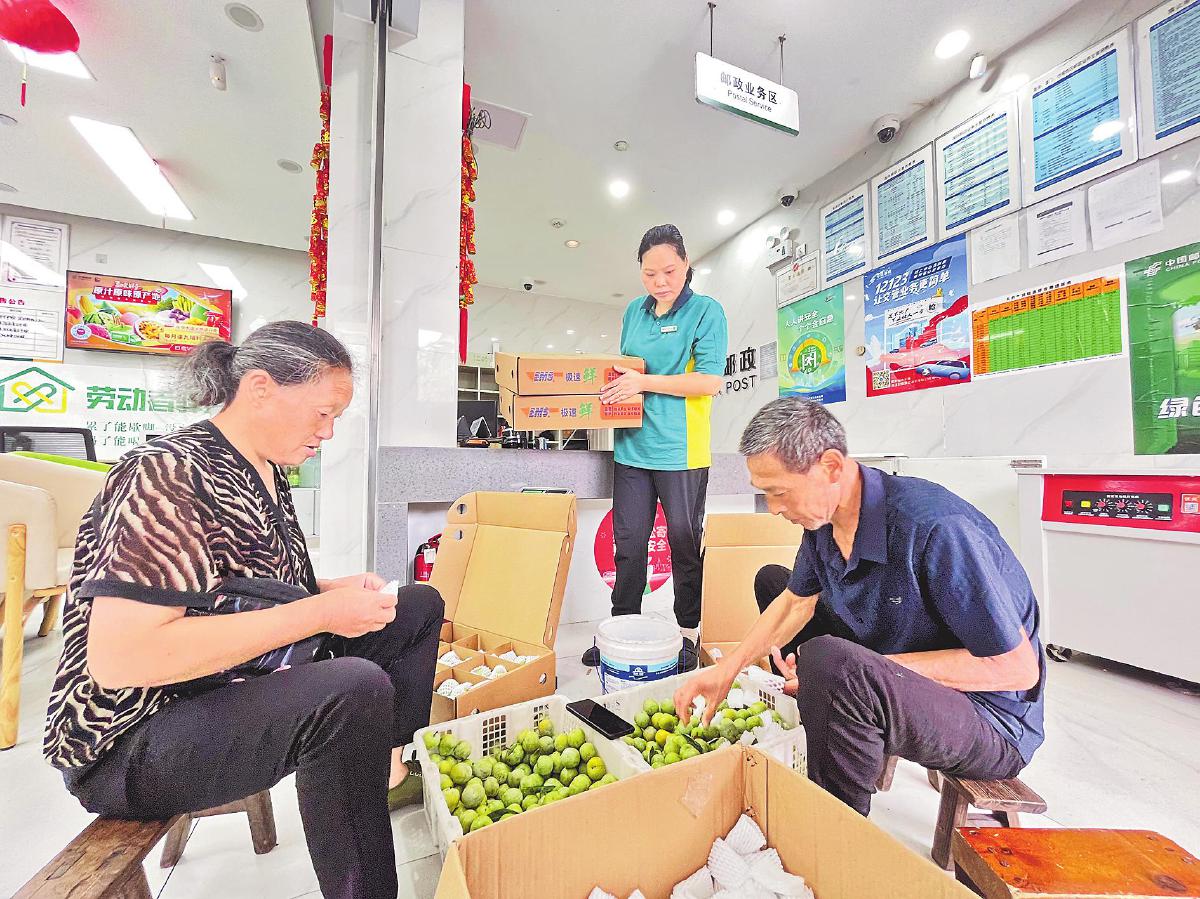 郵政網(wǎng)點為脆李寄遞散戶提供免費包裝服務(wù)?!跣ね窬z