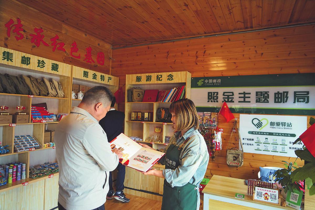 銅川市郵政分公司以紅色照金主題郵局為主陣地,與照金紀(jì)念館、照金管委會、照金開發(fā)公司、干部管理學(xué)院等相關(guān)單位在紅色郵品、政務(wù)圖書、黨建筆記本以及文創(chuàng)紀(jì)念品開發(fā)、供應(yīng)等方面開展了深度合作。圍繞照金紅色教育資源,開發(fā)了照金主題郵資明信片、照金主題信封、弘揚(yáng)照金精神郵冊等產(chǎn)品;圍繞銅川特色人文資源,開發(fā)了《品秦》《龍脈秦嶺四寶》等文創(chuàng)產(chǎn)品和《柳公權(quán)書法》《藥王孫思邈》等主題的個性化郵折;借助郵政獨特的資源優(yōu)勢,帶動了一系列政務(wù)圖書的銷售。紅色照金主題郵局還特別制作了照金革命根據(jù)地紅軍洞、薛家寨、紀(jì)念碑、紀(jì)念館等6枚紀(jì)念戳,為廣大游客及集戳愛好者提供打卡服務(wù)。