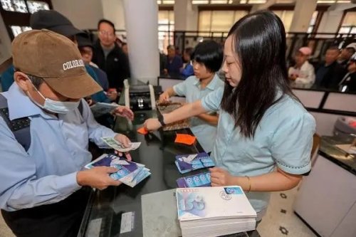 當天還發(fā)行了第55屆世界郵政日紀念封、《萬國郵政聯(lián)盟成立一百五十周年》紀念郵票和《第55屆世界郵政日》YFM118E型郵資機戳,現(xiàn)場吸引了不少市民紛紛駐足,大家有序排隊購買相關郵品并敲蓋紀念郵戳?!拔壹]30多年了,今早特地從嘉定趕過來,為的就是第一時間拿到紀念封和紀念郵票?!迸旁陉犖榈谝晃坏泥]迷黃老伯顯得興奮不已。