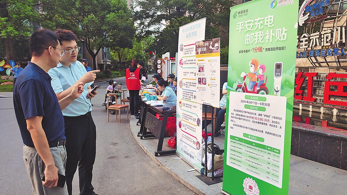 郵政員工為客戶介紹充電優(yōu)惠活動。