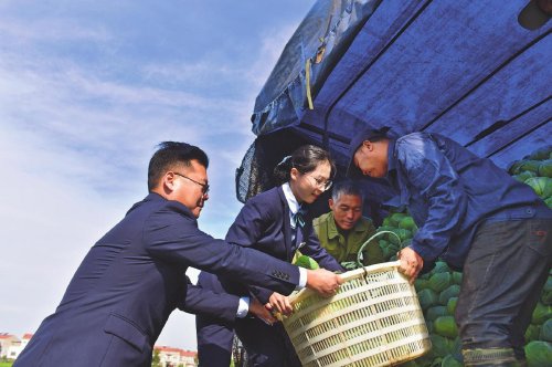秋收時節(jié),湖北省嘉魚縣潘家灣鎮(zhèn)十里蔬菜長廊中,綠油油的包菜一望無際,村民們正忙著砍菜、摘葉、背菜、裝車。郵儲銀行嘉魚縣支行客戶經(jīng)理在對村民進(jìn)行貸后回訪的同時,幫助村民摘葉、裝車。