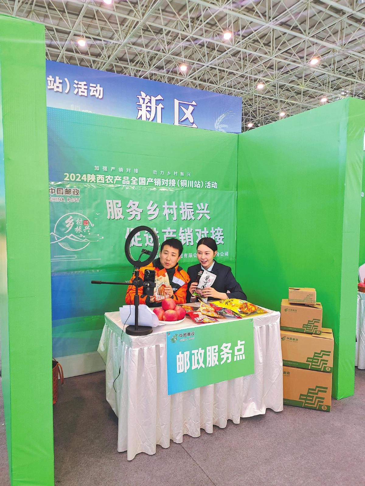 11月20日至22日,由陜西省商務(wù)廳、中國蔬菜流通協(xié)會和銅川市政府主辦的“2024陜西農(nóng)產(chǎn)品全國產(chǎn)銷對接(銅川站)活動”在銅川市舉辦。銅川市郵政分公司以“加強(qiáng)產(chǎn)銷對接助力鄉(xiāng)村振興”為主題,成立了服務(wù)農(nóng)產(chǎn)品全國產(chǎn)銷對接活動小組,現(xiàn)場設(shè)置郵政服務(wù)點(diǎn),并通過郵樂直播推介銅川蘋果、醬牛肉、椒麻雞等特色農(nóng)產(chǎn)品,得到地方政府及相關(guān)部門的稱贊。