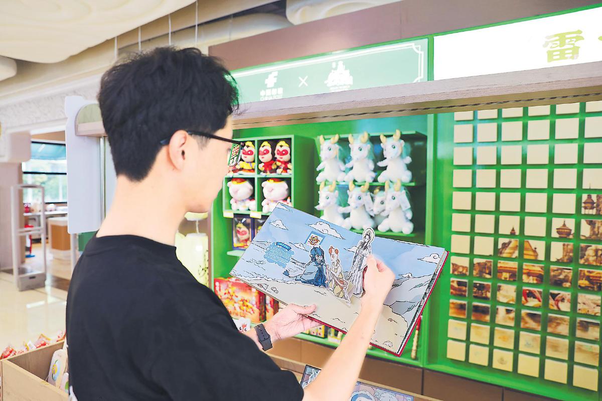 游客在西游主題郵局選購《非人哉——盛世龍吟》立體書。