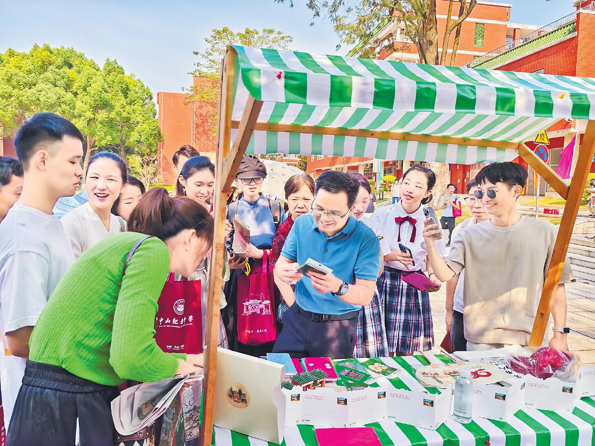 中山紀(jì)念中學(xué)的師生和校友選購校慶集郵文創(chuàng)產(chǎn)品。