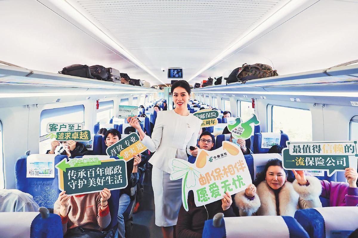 12月20日,中郵保險(xiǎn)在江蘇南京南站舉辦了高鐵冠名專(zhuān)列首發(fā)儀式,并在冠名的高鐵品牌列車(chē)上開(kāi)展了“情滿江蘇 服務(wù)萬(wàn)家”金融消保知識(shí)問(wèn)答活動(dòng)?;顒?dòng)中,中郵保險(xiǎn)特邀主持人向乘客介紹了中郵保險(xiǎn)的綜合實(shí)力與優(yōu)質(zhì)服務(wù),中郵保險(xiǎn)工作人員圍繞金融消費(fèi)者權(quán)益保護(hù),與乘客進(jìn)行了趣味有獎(jiǎng)問(wèn)答互動(dòng),并邀請(qǐng)乘客掃描二維碼,關(guān)注中郵保險(xiǎn)微信公眾號(hào),觀看《大國(guó)保險(xiǎn)》普惠促進(jìn)城鄉(xiāng)融合暨中郵保險(xiǎn)專(zhuān)題片。此次活動(dòng)為乘客們?cè)鎏砹寺猛镜臉?lè)趣,也進(jìn)一步傳播了中郵保險(xiǎn)“郵保相伴 愿愛(ài)無(wú)憂”的品牌主張。
