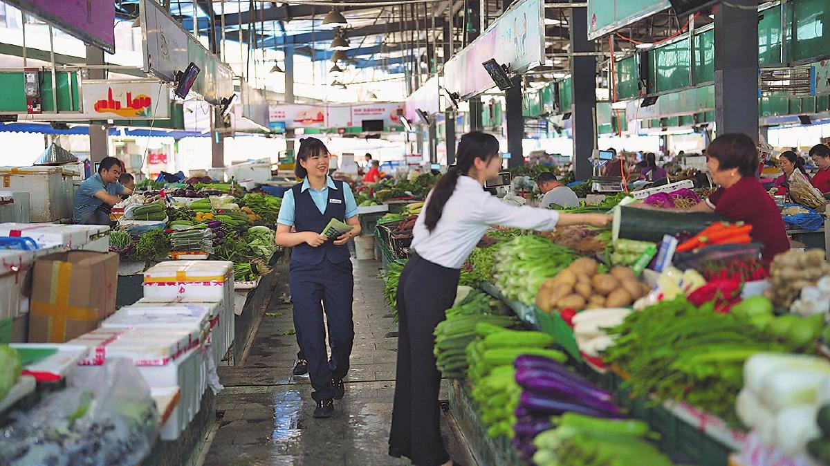 上午9點(diǎn),陽(yáng)光透過市場(chǎng)的棚頂,斑駁地灑落在濕漉漉的地面上,空氣中彌漫著新鮮蔬菜和水果的香氣。在廣東省深圳市龍華區(qū)觀瀾綜合菜市場(chǎng),人潮開始涌動(dòng),一座城市剛剛醒來。深圳市龍華區(qū)郵政分公司的“郵金智聯(lián)隊(duì)”成員手持宣傳單,向菜攤逐個(gè)推介著。
